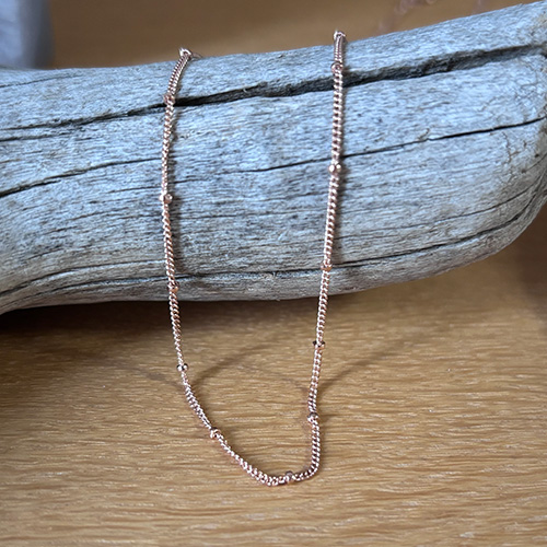 Filigrane Kette mit Panzerelementen und kleinen Kugeln 1mm in rosévergoldetem Silber 925, passend für Edelstein-Anhänger.